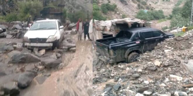 ڈپٹی کمشنر نے بتایا کہ بابوسر روڈ پر لینڈ سلائیڈنگ اور سیلاب سے 7 سے 8 کلومیٹر سڑک مکمل طور پر تباہ ہو چکی ہے، جبکہ 10 سے 15 گاڑیاں، جن میں کوسٹرز بھی شامل ہیں، پانی کے ریلے میں بہہ گئی ہیں۔